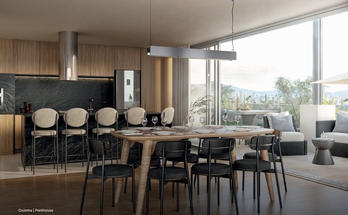 Esta cobertura estilo penthouse surpreende com uma planta de 220,91m² privativos, sendo 156,82m² cobertos + 64,09m² de terraço com ponto para jacuzzi, área gourmet e lavabo.