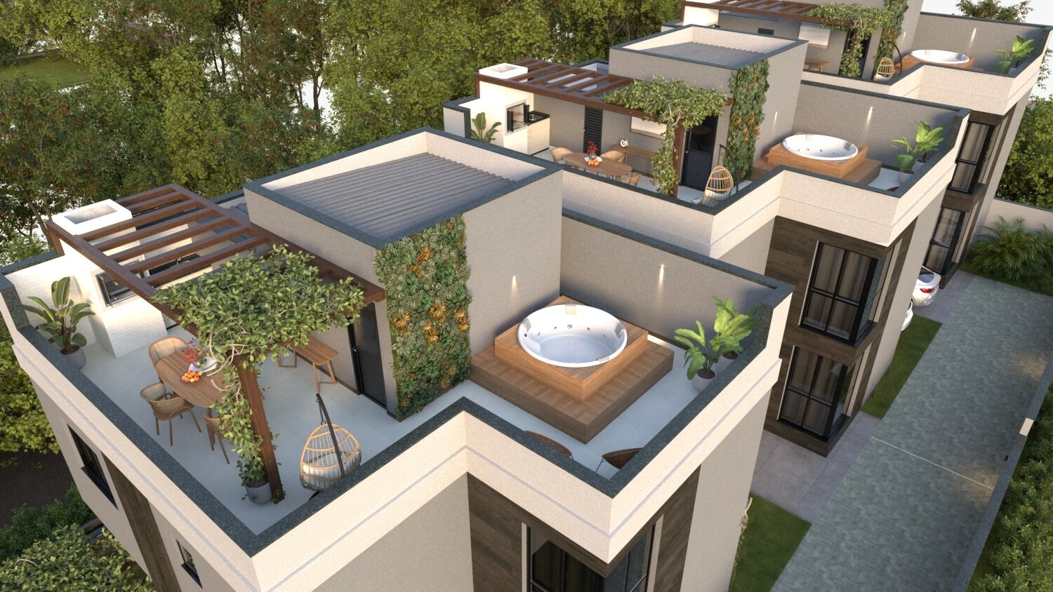 ✔️ 195m² privativos + 47m² de terraço + 48m² de área gramada e vaga de veiculo para curtir ao máximo seus momentos de lazer;