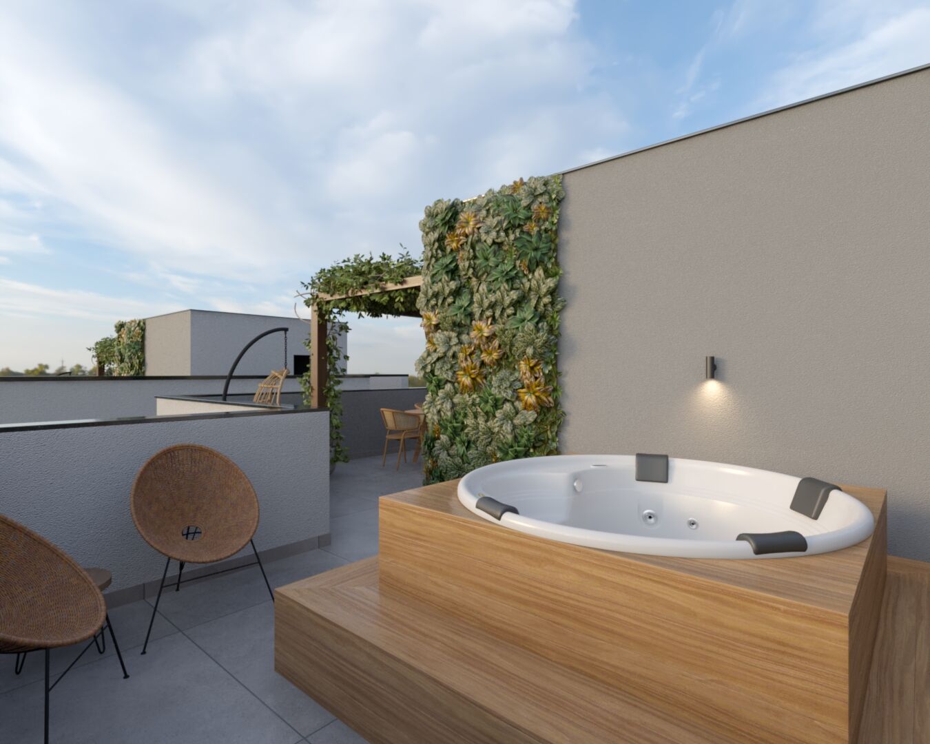 ✔️ Terraço incrível com espaço para instalação de jacuzzi, perfeito para relaxar e aproveitar a vista!